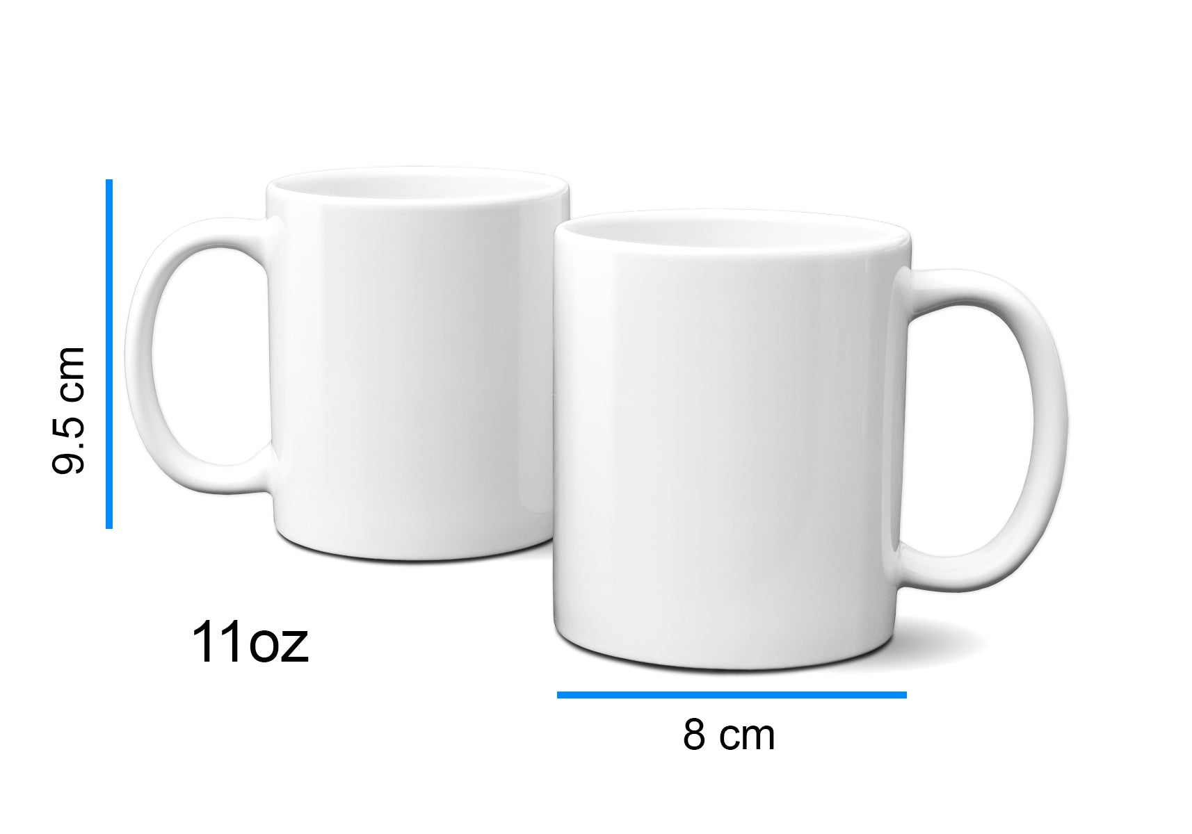 We work on ceramic mugs as they are strong and brittle, and can go in microwave and dishwasher. 11 ounce capacity of our mugs is just right for a person for regular use at home, office or a coffee shop.